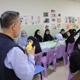 ولم يكتفِ الأستاذ خريّس بالتوجيه، بل شارك الطلاب في تنفيذ أعمال فنية استخدموا فيها الحروف العربية كورشة تعبير جمالي، مطوّعين ورق الجدران والألوان الزاهية لتكوين لوحات نابضة بالحياة، تحمل بُعدًا فنيًا وهُويّة ثقافية في آنٍ واحد.