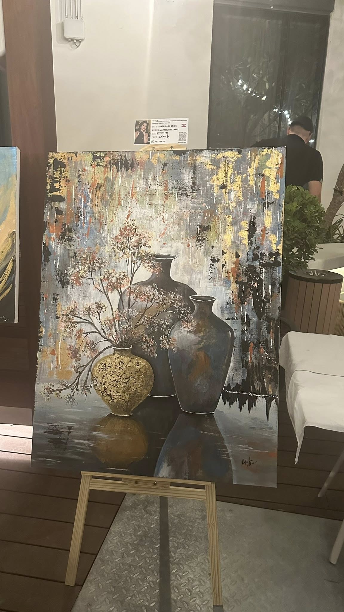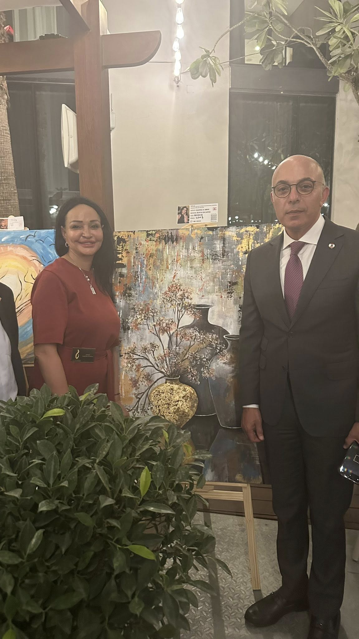 وكان من بين المشاركين الفنانة اللبنانية راغدة الأمين سكيكي، التي عرضت عملًا فنيًا يجمع بين الأسلوب الواقعي في عناصر الطبيعة الساكنة والتقنيات التجريدية في المعالجة اللونية، ما منحها بُعداً فنياً خاصاً ومعبّراً عن امتزاج الذاكرة البصرية بالمشاعر.